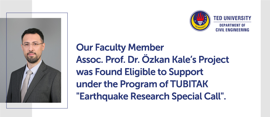 Our Civil Engineering Department Faculty Member Assoc. Prof. Dr. Özkan Kale's project titled " Regional Representation of Ground Motion Epistemic Uncertainty in Seismic Hazard Analysis of Turkey by Backbone Approach and Investigation of Its Common Impact" was found eligible to receive support for 36 months under the TÜBİTAK ARDEB-1001 “Earthquake Research Special Call”.